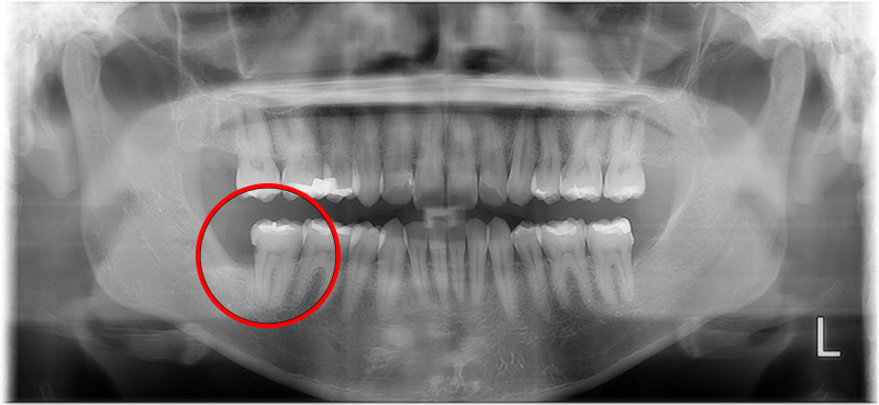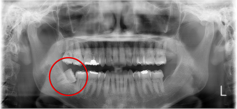 - レントゲンを撮ると、親知らずの周りに影が見えることがあります。
